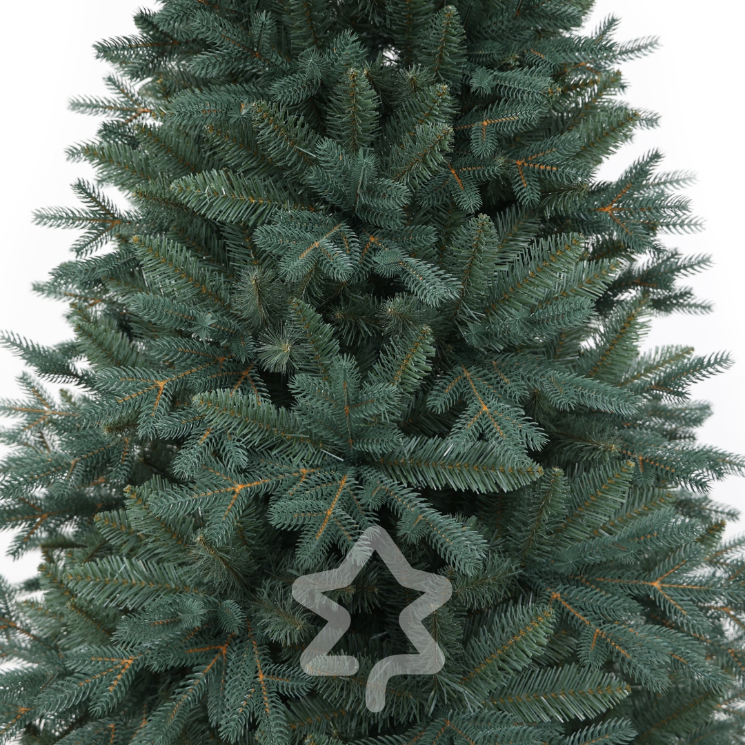 A Ezüst lucfenyő 180 cm elegáns sziluettel és hagyományos megjelenéssel és 3D PE és 2D PVC tűlevelek kombinációjával a realisztikus hatásért jellemzi.
